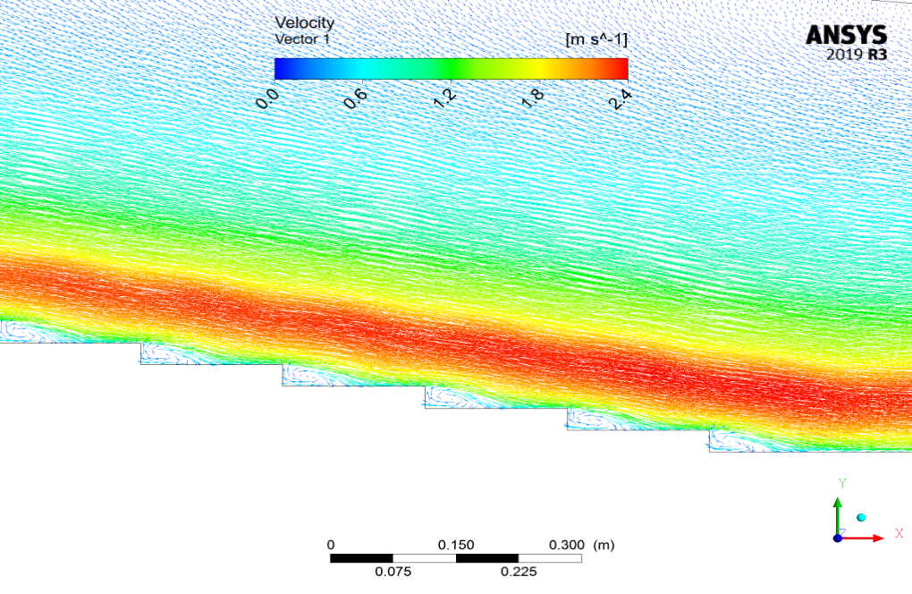 In this analysis, two-dimensional simulation of a stepped spillway by ANSYS Fluent software is presented.