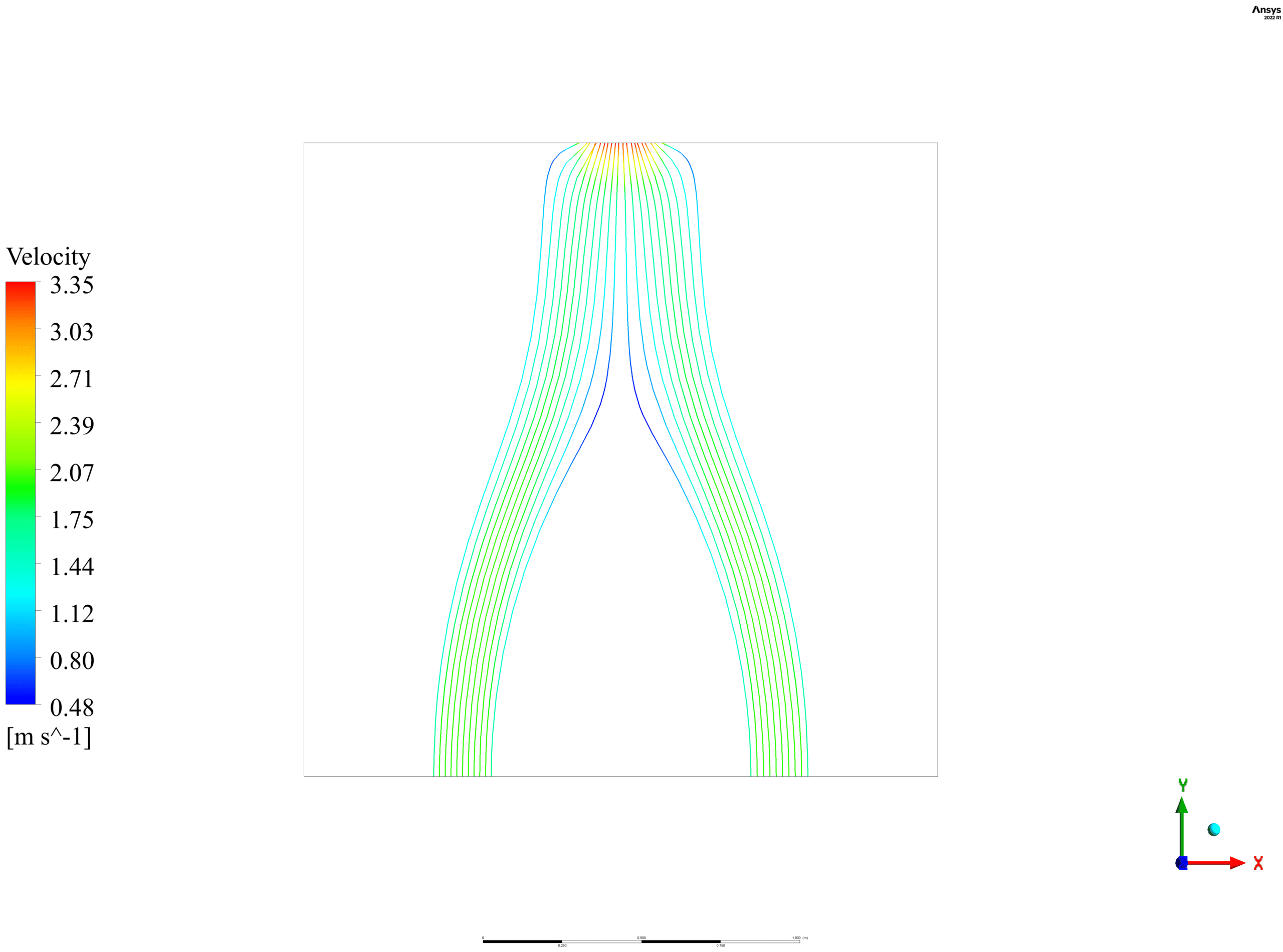 Water pressure, temperature, Eddy viscosity, and velocity-related two-dimensional contours and vectors are obtained at the end of the solution procedure in CFD-Post software.