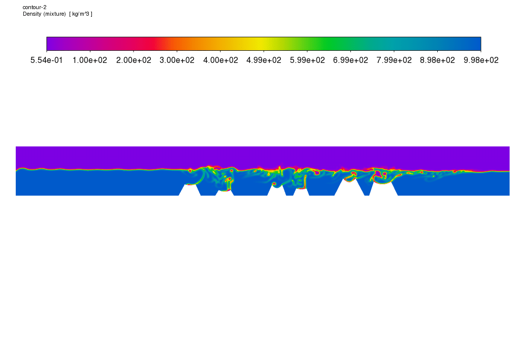 - The multiphase VOF model is used to model the three phases of air, water and vapor.