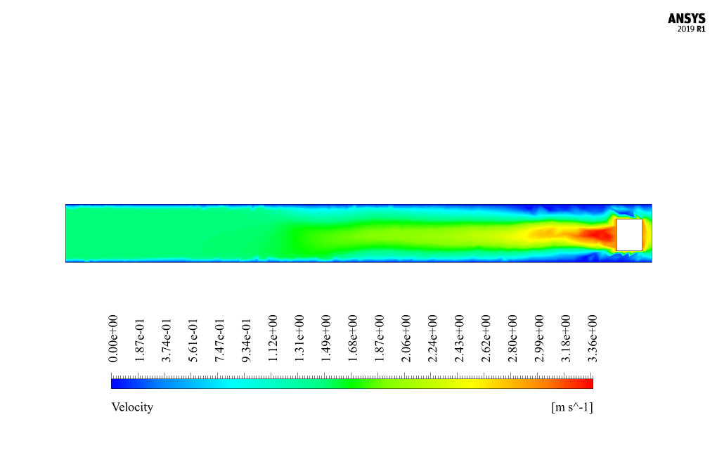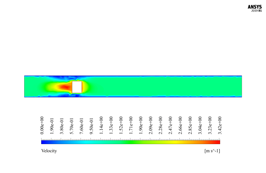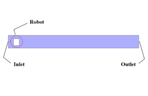 The present model is designed in two dimensions using Design Modeler software. The model is a two-dimensional channel in which a rectangular robot is placed. The channel has a length of 5 m and a width of 0.5 m. Also, the robot inside the channel has a length and width of 0.22 m and 0.27 m, respectively.