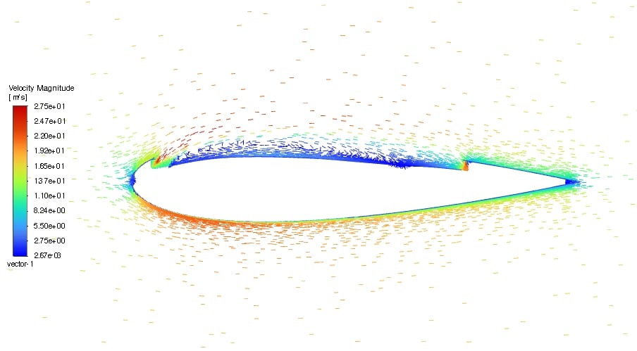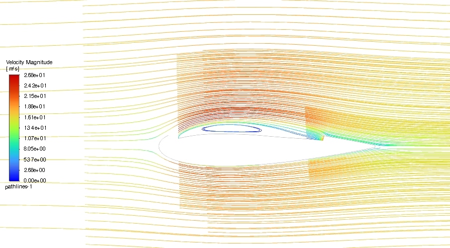 Using a pressure-based solver, steady-state conditions guided the simulation. Gravity’s influence was ignored. Boundary layer phenomena are successfully captured by the k-Omega SST turbulence model, which accurately predicts flow behavior near the walls. This model produces better forecasts of flow separation and reattachment zones by combining the benefits of the k-epsilon and k-omega models. Using ANSYS Meshing, the mesh was created with particular focus on capturing tiny details near the surface of the airfoil through inflating layers, therefore guaranteeing correct modeling of the boundary layer under the impact of injection.