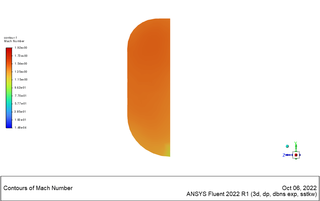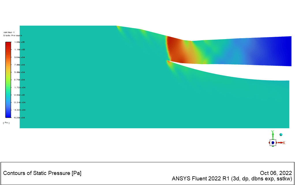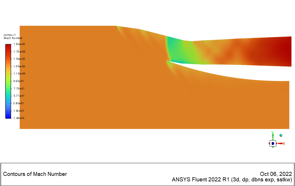 In this simulation, the density-based solver has been used. For modeling turbulence, the k-omega SST model was used. In this simulation, the intake is simulated at the operational point with a velocity of 1.4 mach.
