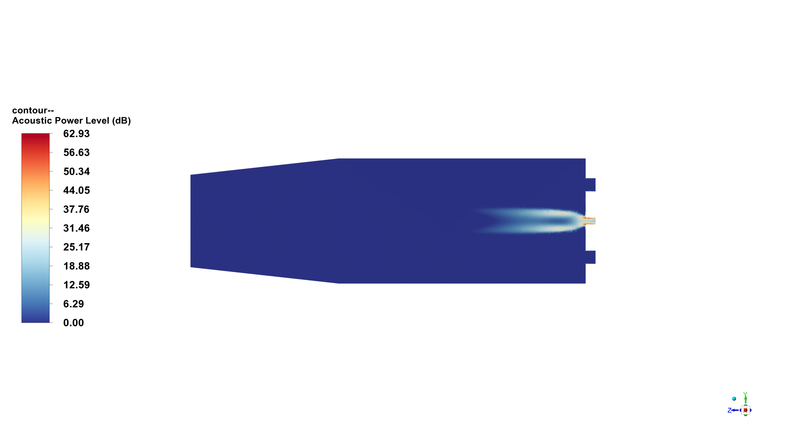 Also, the acoustic is modeled via the Broadband Noise Source model. This model predicts the broadband noise of turbulent flows in a computational fluid dynamics (CFD) simulation.