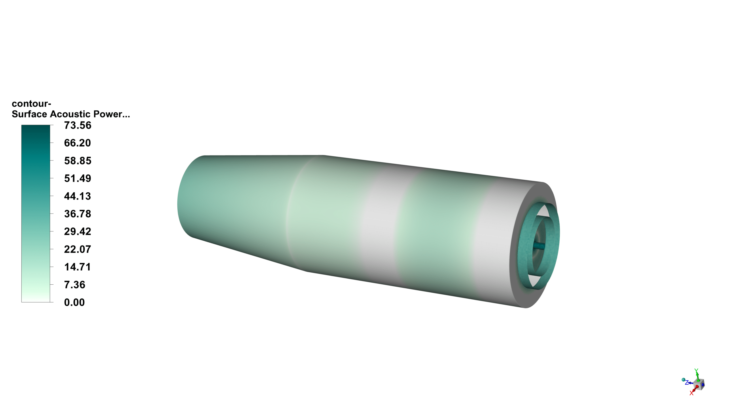 The simulation you’re asking about utilized a steady-state solver for the acoustic calculations in ANSYS Fluent software, appropriate for capturing the acoustic power levels without the need to compute the transient behavior of the flow.