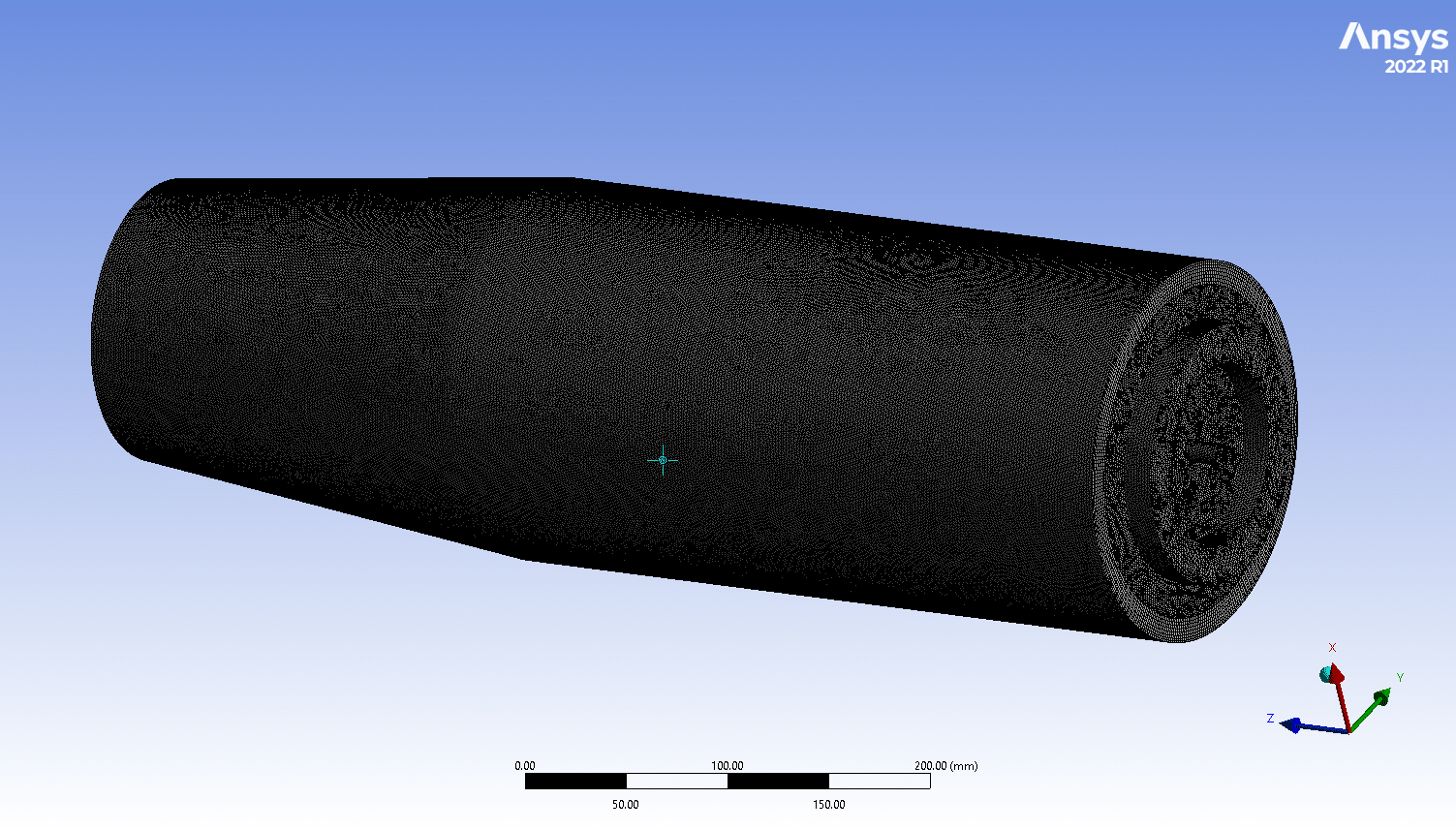 The geometry of the solution is designed in SpaceClaim software, and the elements of the meshing process are generated in ANSYS Meshing software.