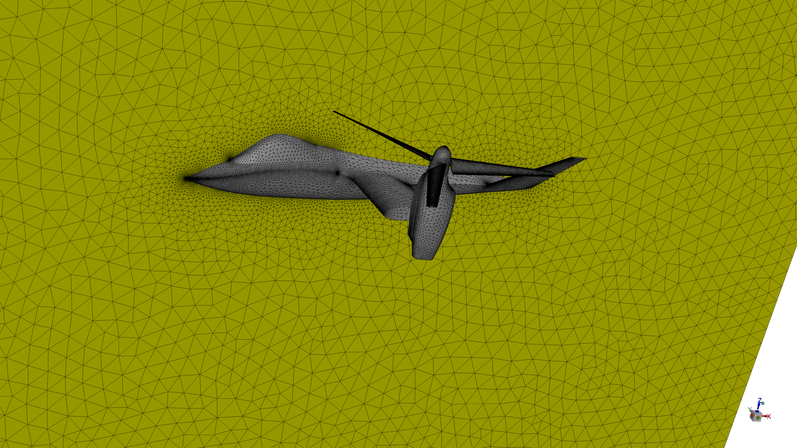 Using ANSYS Meshing, we developed a sophisticated non-conformal mesh around the propellers and arms domains. This specific mesh configuration was essential for accurately capturing the mesh motion method and ensuring computational stability during the simulation.