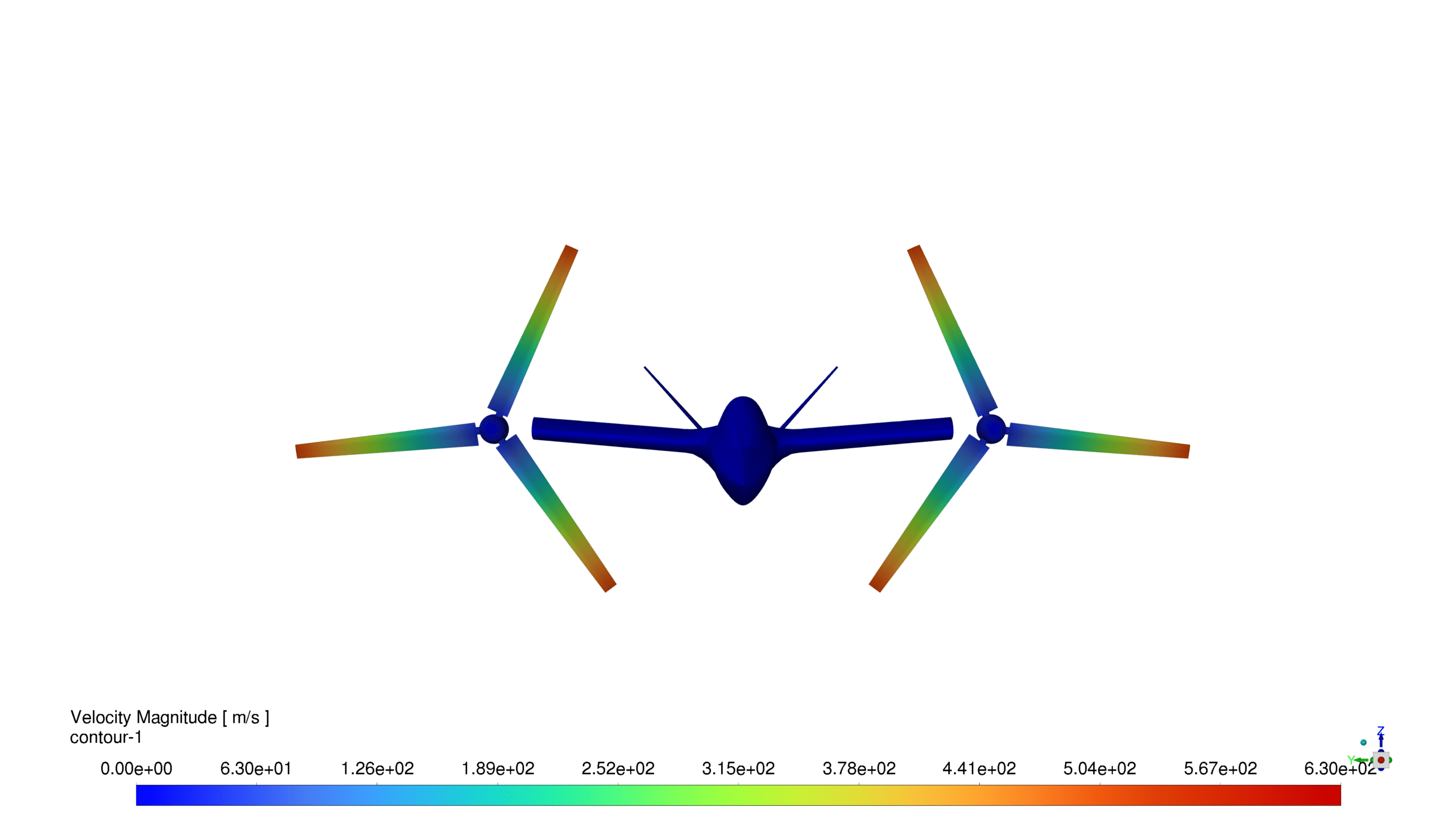 - High-velocity regions at blade tips confirming efficient propeller design