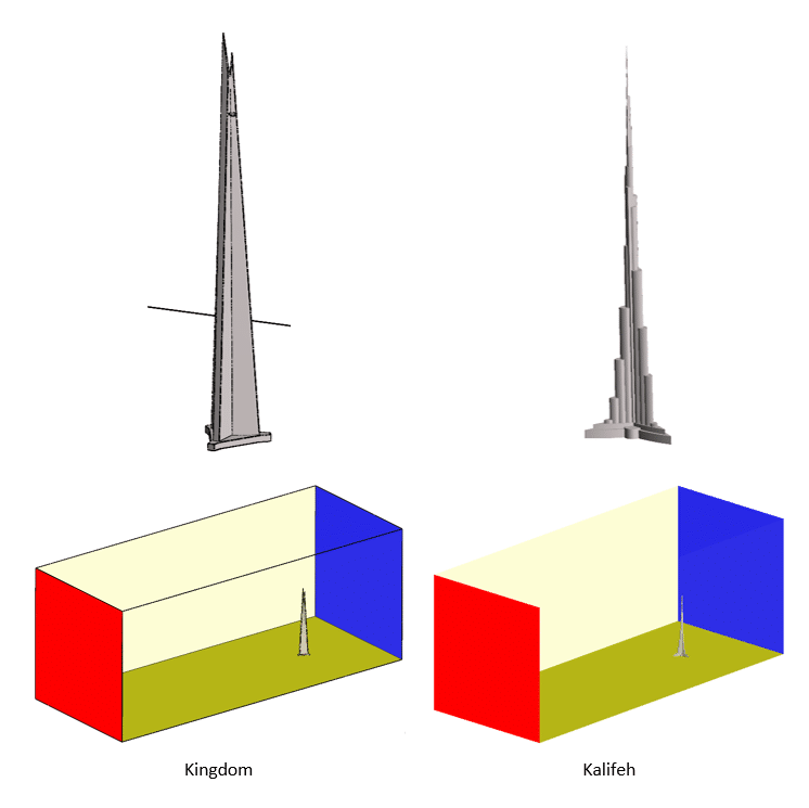 To compare the two towers, we must first pay attention to the geometry of each. The Jeddah Tower has sharp edges along its entire length, and on the other hand, the Burj Khalifa has multiple floors that decrease in area as it moves away from the ground. Another critical point is the Burj Khalifa’s symmetry and the Jeddah structure’s asymmetry. The large curvatures of the Burj Khalifa also significantly impact the results obtained.