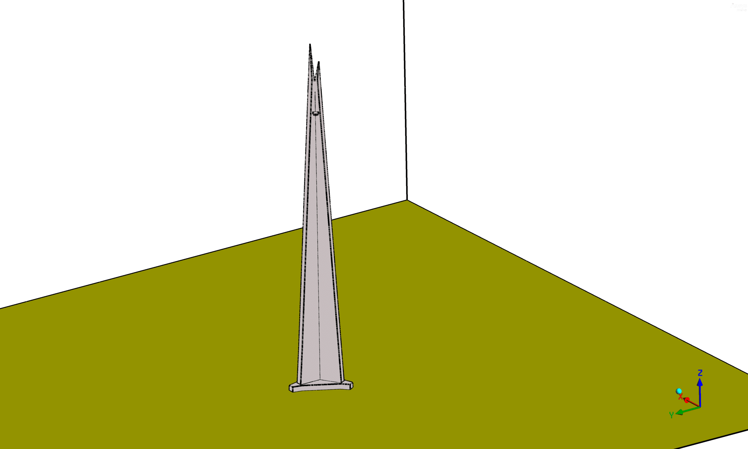 For simulation of tower aerodynamic in Fluent, the Pressure-based solver has been used with respect to the working fluid, which is air and can be assumed to be incompressible. The solution has also been solved Steady, so that the variables do not change with time; in other words, the solution is independent of time. In addition, the boundary conditions at the inlet are defined as velocity-inlet with a velocity of 10 m/s, and at the outlet as pressure-outlet with a relative pressure of 0, to consider the environmental conditions properly. Specifically, the ground surface is defined as a wall to have its effect on the flow, and the walls of the three-dimensional domain are symmetry boundary conditions. It is worth noting that the k-e Realizable turbulence model has been used to model the flow.