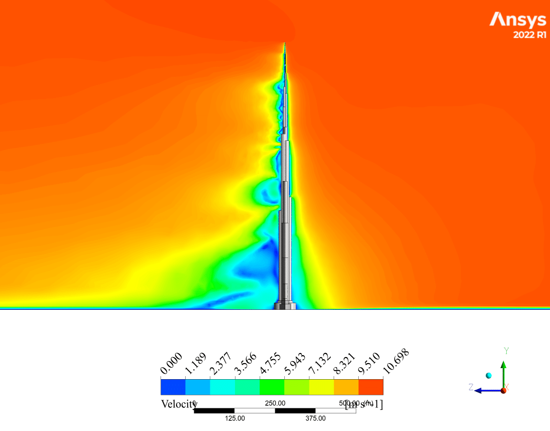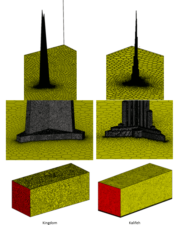 In tower aerodynamic project, the 828-meter-high Khalifa Tower and the 1,000-meter-high Jeddah Tower are simulated to investigate the aerodynamic behavior of the air flow around the two structures, which are exposed to a wind flow of 10 meters per second.