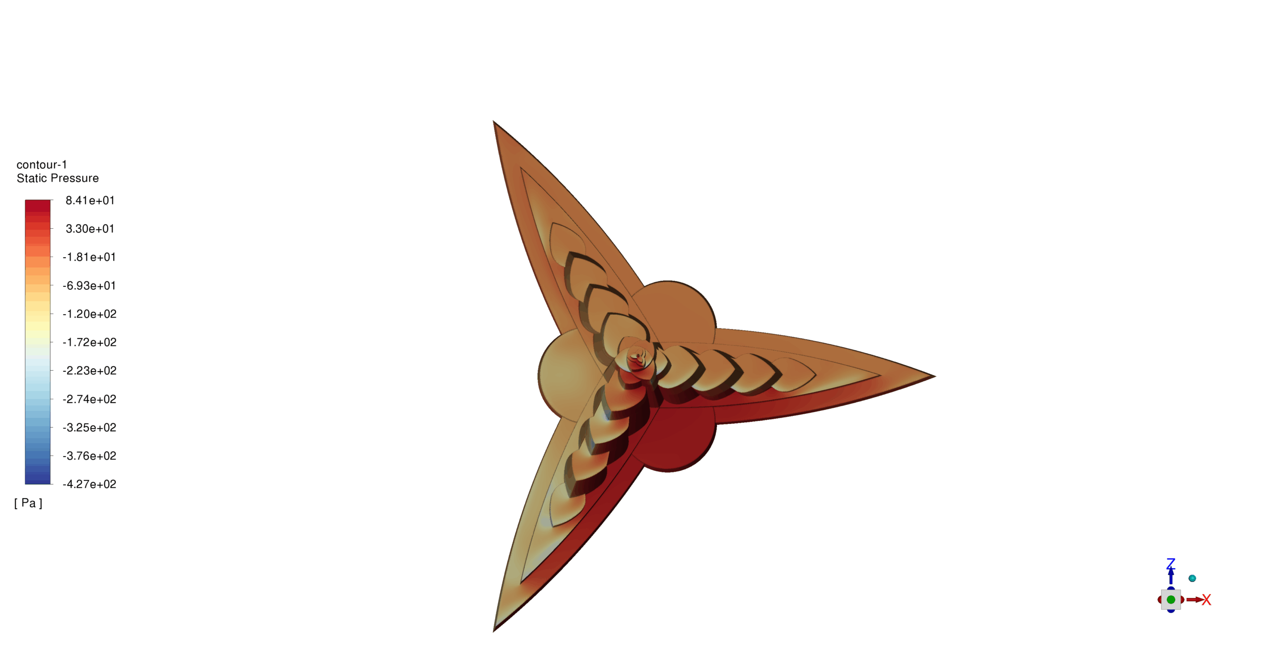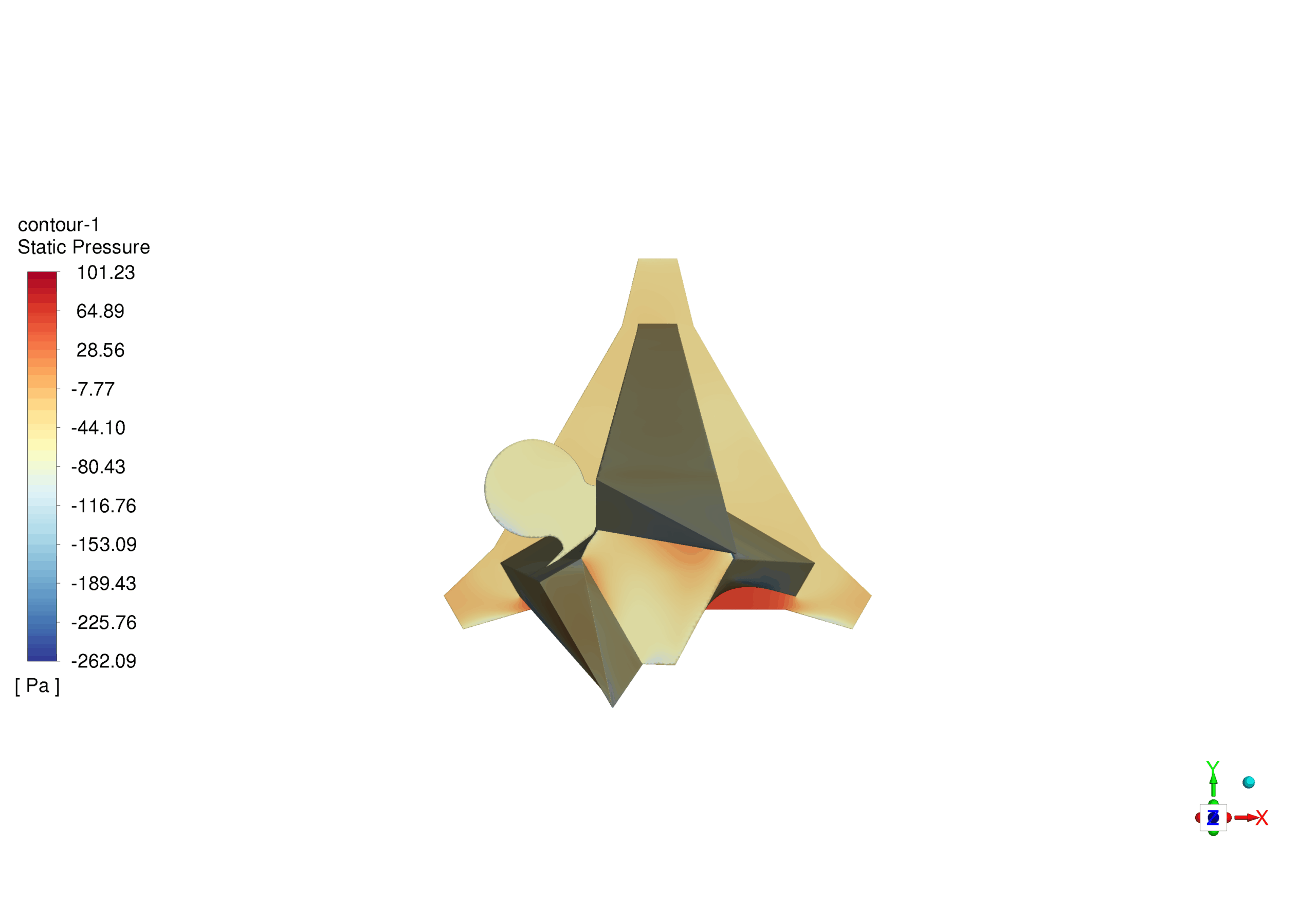 - A pressure-based steady solver with the Realizable k-ε turbulence model was applied, with velocity-inlet and pressure-outlet boundary conditions.