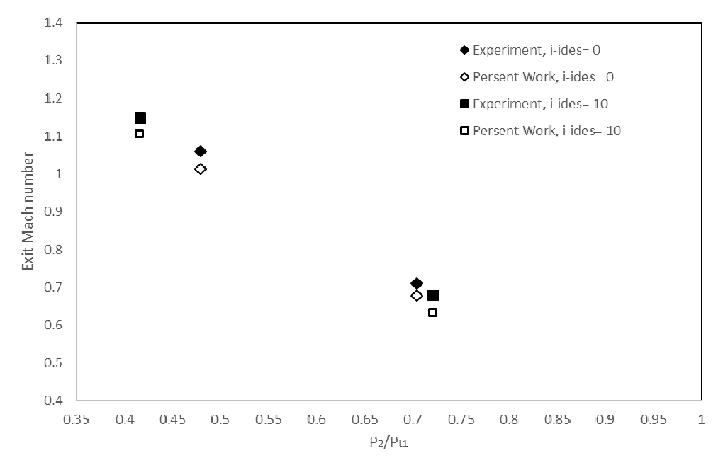 Table 1: Exit Mach number at different pressure ratio, design and off-design incidence