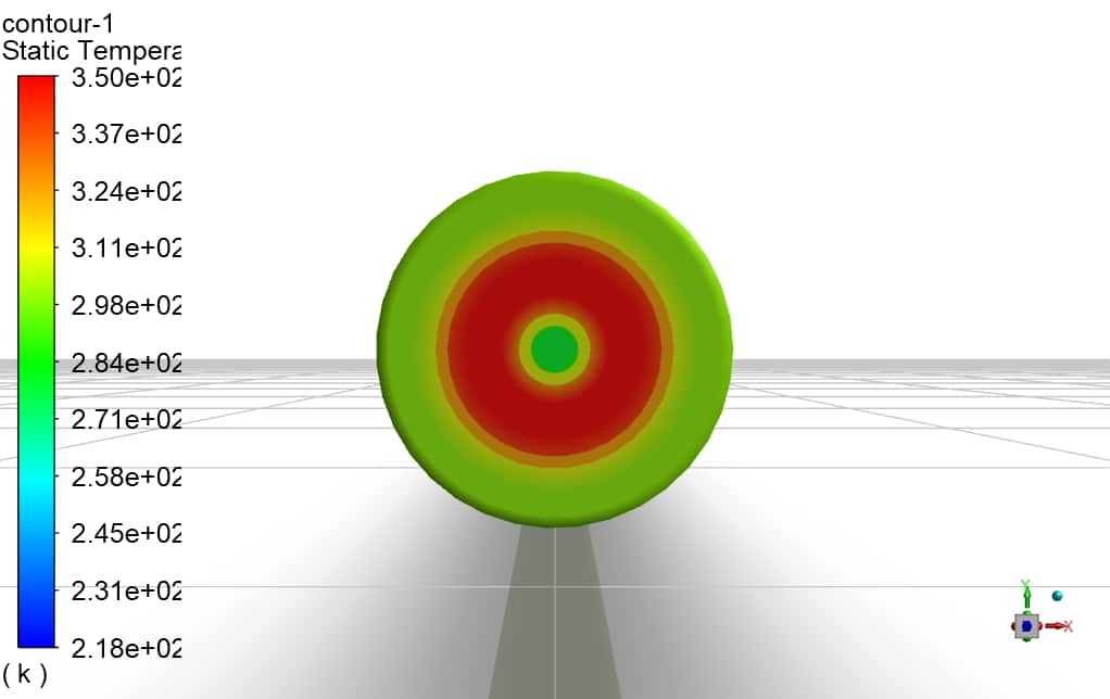 At the end of the solution process, two-dimensional and three-dimensional contours related to temperature are obtained. As can be seen, the water flow temperature within the middle pipe decreases as it loses heat to water flows in the inner and outermost pipes.