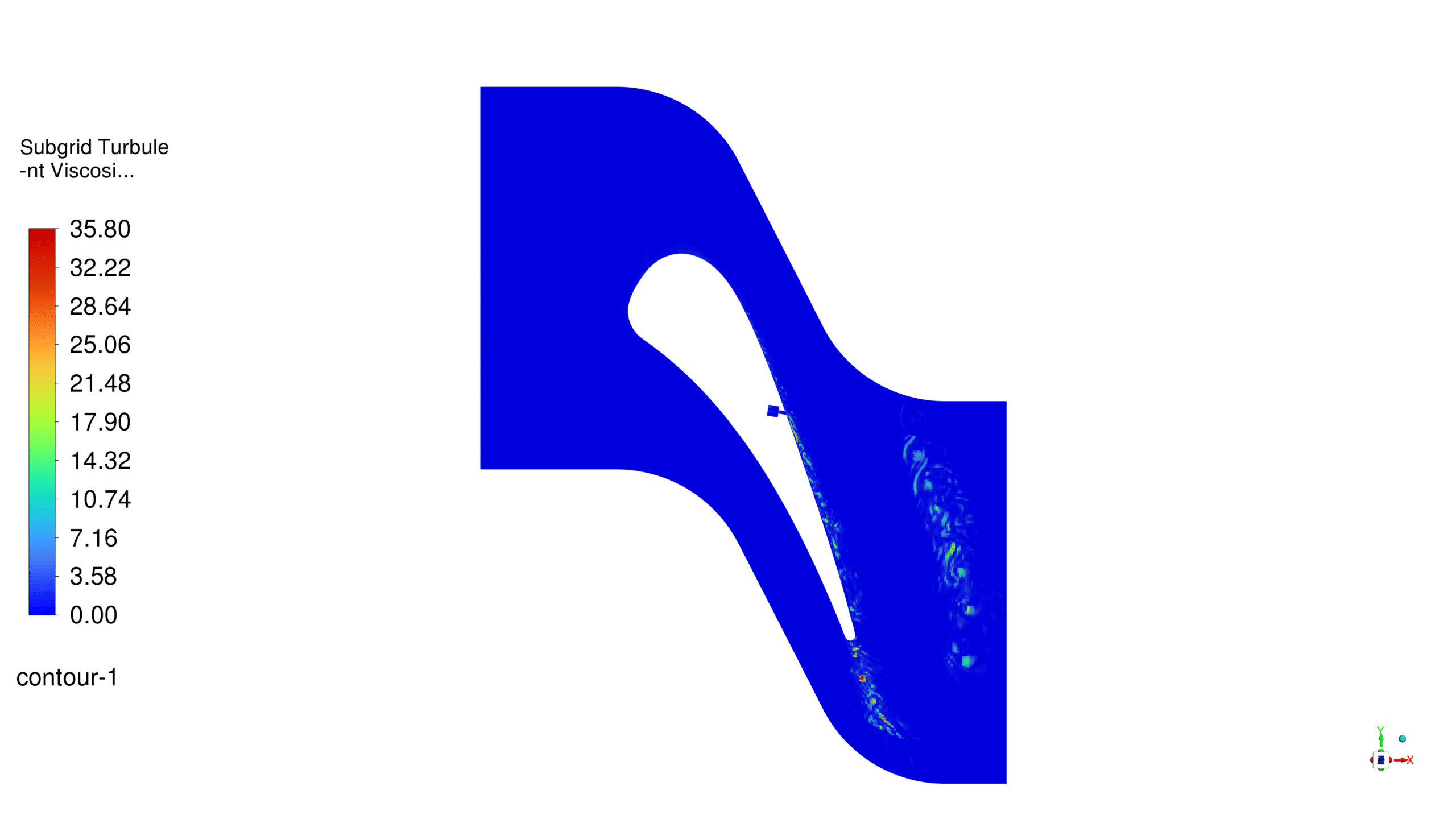 Overall, the LES model offers a more detailed and accurate representation of the flow characteristics and turbulence effects within the turbine vane passage. However, this comes at the cost of higher computational resources compared to the k-Omega SST model, which provides a good balance between accuracy and computational efficiency.