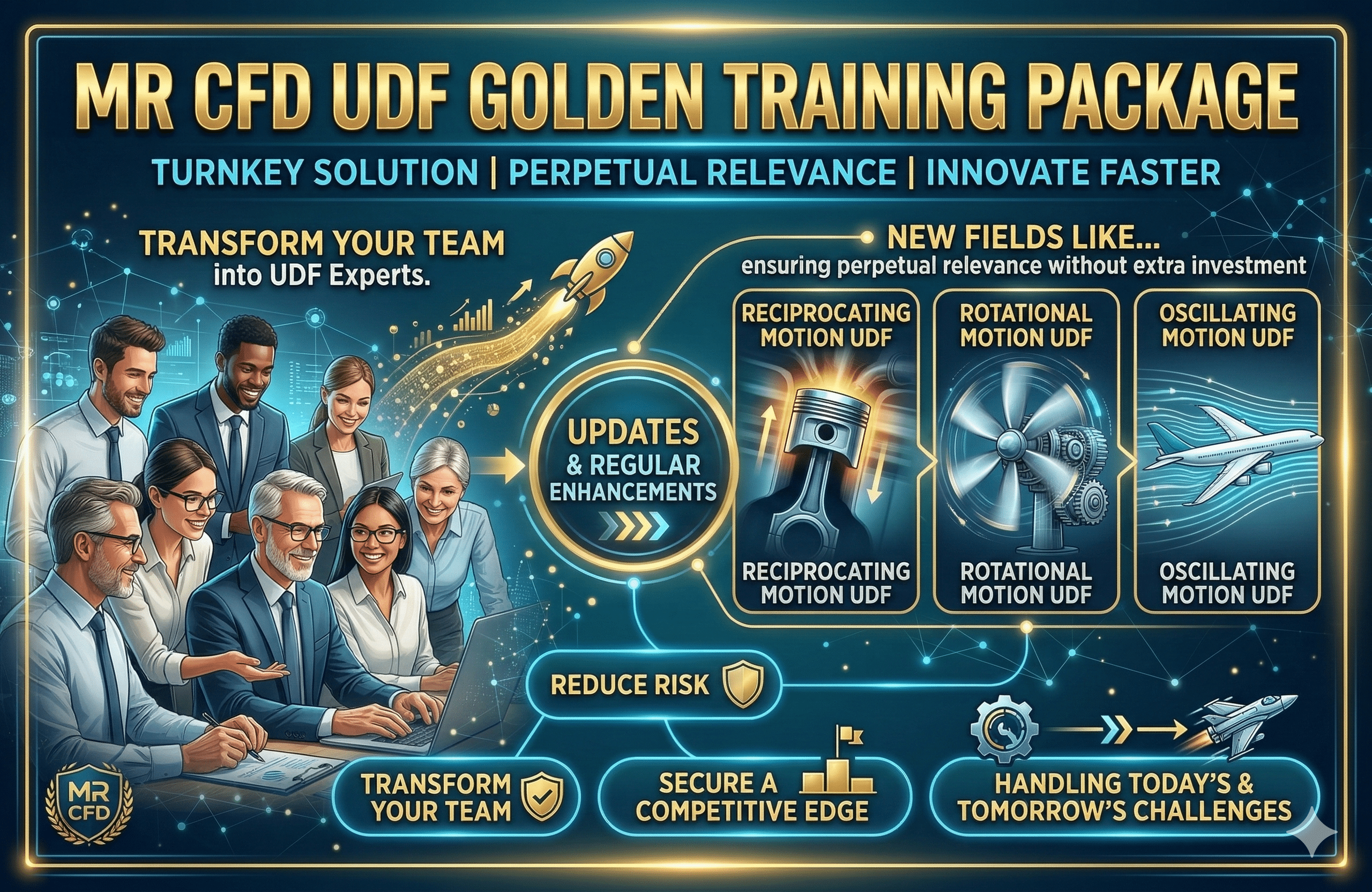Packages receive regular enhancements for new project fields like Reciprocating, Rotational, and Oscillating Motion UDF, ensuring perpetual relevance without extra investment. Invest in MR CFD’s “UDF Golden Training Package” and transform your team into User Defined Function experts ready to meet today’s and tomorrow’s engineering challenges. This turnkey solution empowers your organization to innovate faster, reduce risk, and secure a competitive edge with confidence.