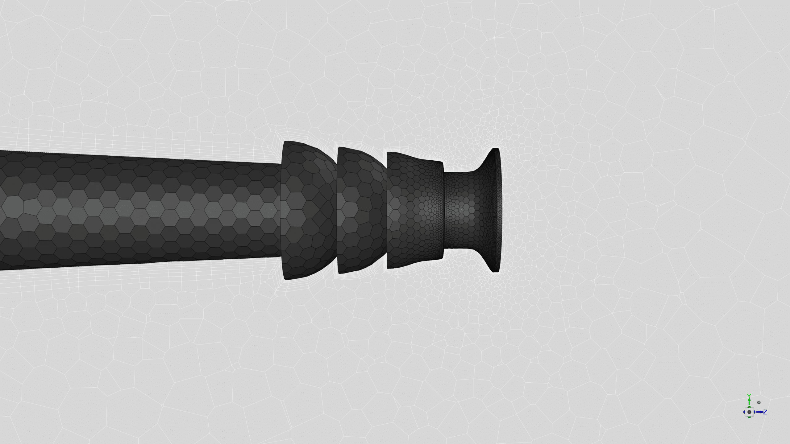 Geometry and Mesh: The geometry and mesh settings remain the same as in the previous study, the VA-111 Shkval designed in SpaceClaim and meshed using Fluent Meshing, resulting in a polyhedral mesh with 257,000 cells.