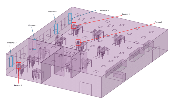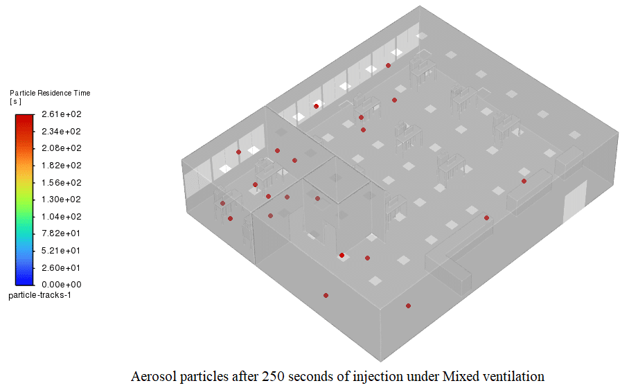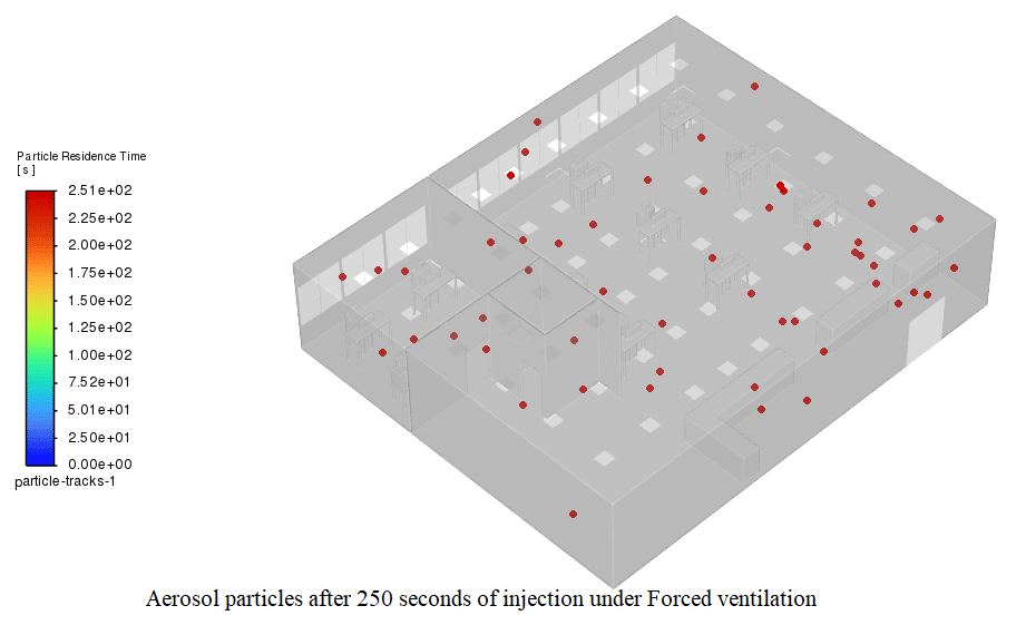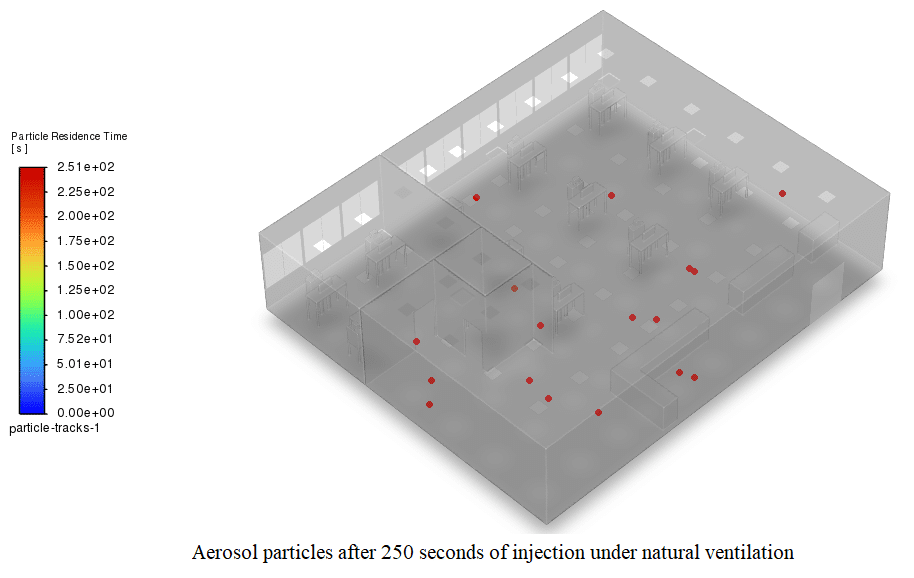 - 3 employees are infected. The virus particles are modeled by Discrete Phase Model (DPM).