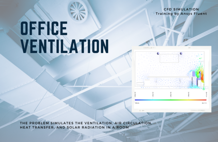 - The problem numerically simulates the Office Ventilation and heating by Solar Radiation using ANSYS Fluent software.