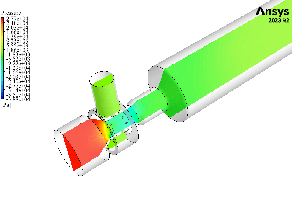 The pressure distribution aligns with theoretical expectations for a venturi system, validating the simulation’s accuracy.
