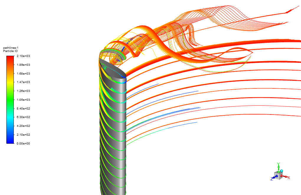 The stronger the tip vortex core, the stronger the lift force applied to the blade. This change in strength is due to the turbine rotor blade’s changing lift as it rotates through different phase angles.