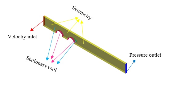 We apply a Simple algorithmic the pressure-velocity coupling, and we choose SST model as a turbulence model. Also, we present the other settings such as the discretization method and initial conditions in the table below.