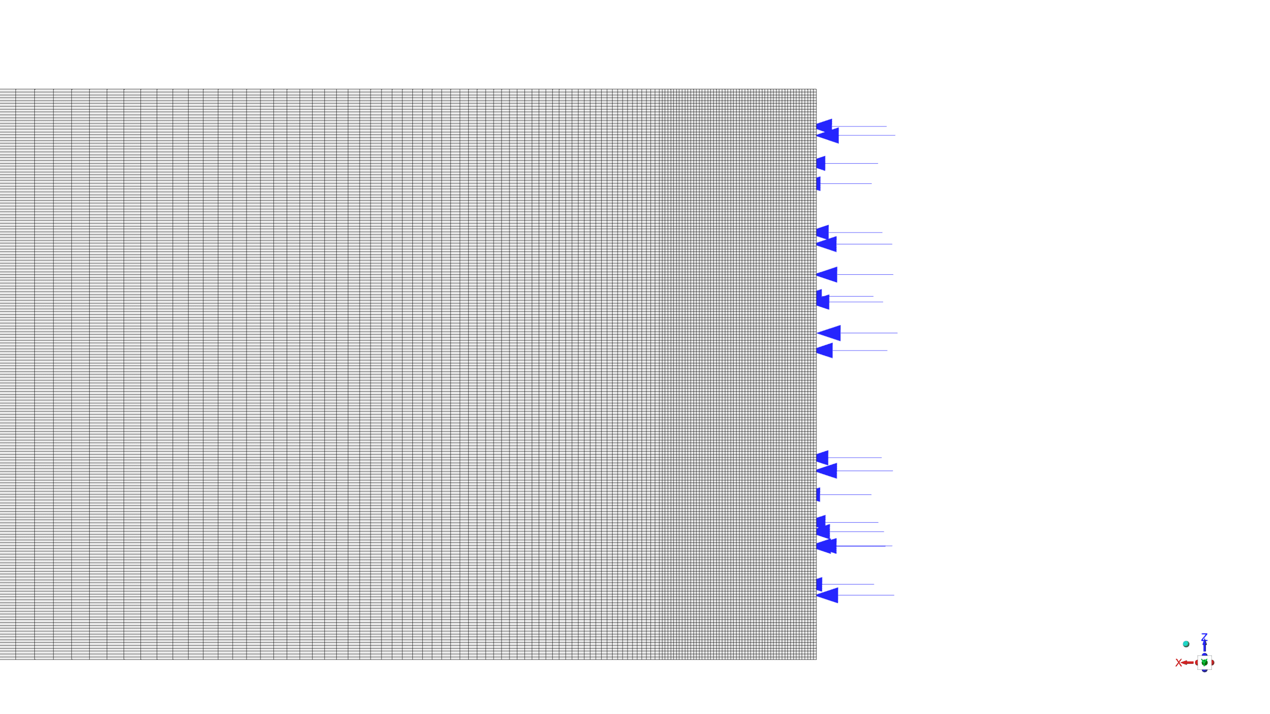 The geometry was designed using ANSYS Design Modeler, consisting of a rectangular enclosure with water injection on the left side and air flow on the right side. The meshing process, carried out using ANSYS Meshing, resulted in a high-quality structured mesh comprising 3,157,674 elements. Adaptive mesh refinement was employed to ensure high resolution in critical areas, particularly at the water-air interface.