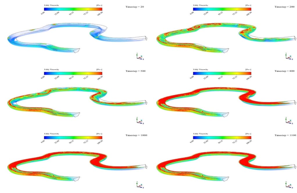 We’re thrilled to hear you had a great learning experience! When analyzing eddy viscosity in these types of simulations, you can monitor it in the results section. Look at the contour of eddy viscosity to observe areas of increased turbulence and relate this to how pollutants diffuse. Compare them with velocity fields to understand the interplay between flow patterns and mixing rates.