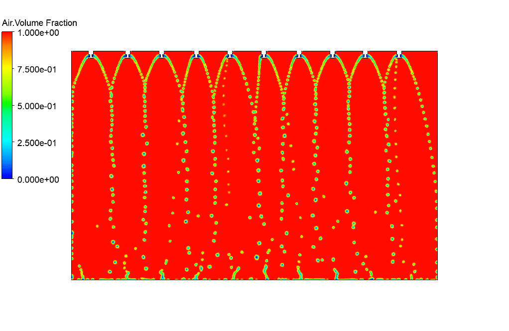 The system consists of two different fluids, including air as the primary fluid and one secondary fluid, water. The Eulerian multiphase model has been used.