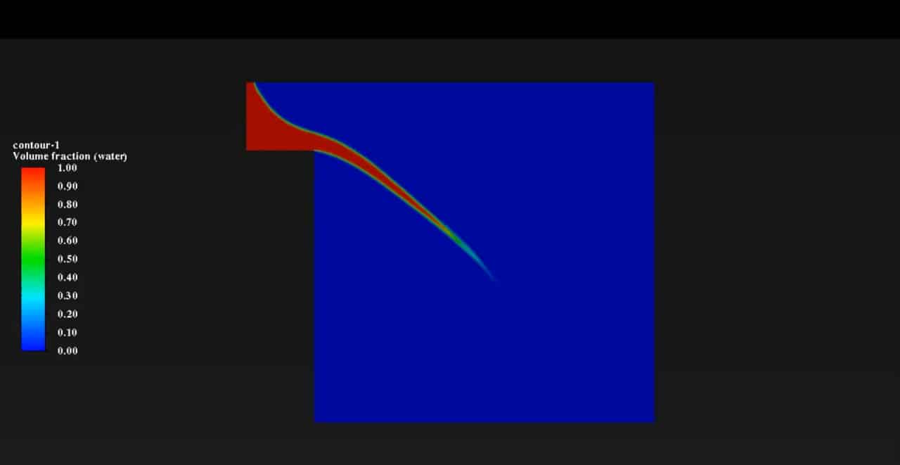 The CFD simulation successfully captured the complex dynamics of Water Tank filling . The animation reveals the progressive filling process, starting with water entering from the top left corner of the tank. As the simulation advances, a distinct interface between water (red) and air (blue) forms, demonstrating the capabilities of the Volume of Fluid (VOF) model in capturing multiphase interactions.
