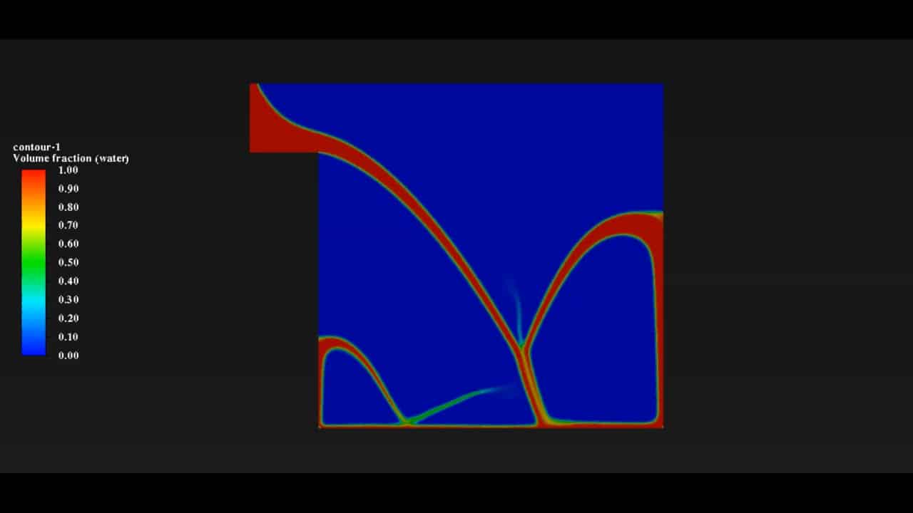 - The Volume of Fluid (VOF) model was employed to simulate the interaction between water and air phases