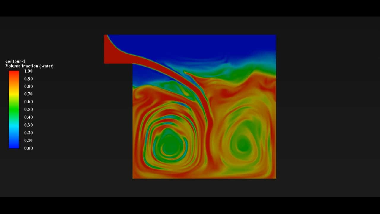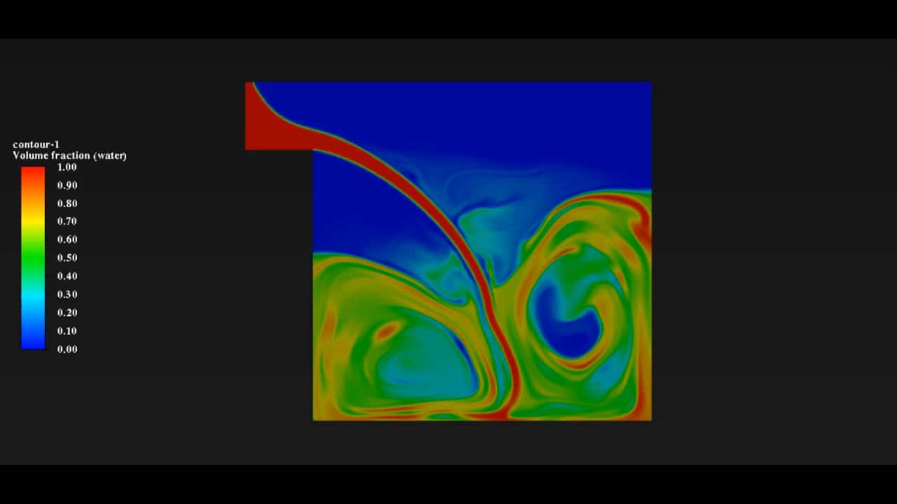 The UDF-controlled time step allows for accurate capture of both rapid changes in the early stages and more gradual changes as the tank fills. The simulation provides valuable insights into the filling process, including the formation of eddies, potential air entrapment, and the overall fluid behavior. These results can be instrumental in optimizing tank design and filling strategies for various industrial applications.