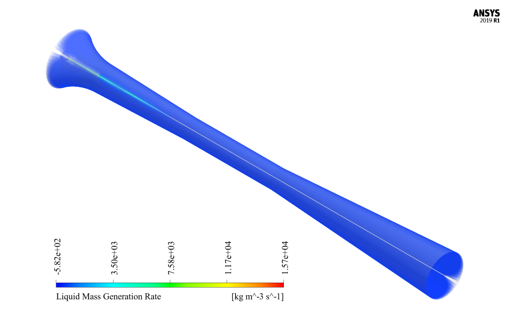 It is also possible to obtain a three-dimensional contour of these parameters by rotating this two-dimensional contour around the central axis. The liquid mass generation rate is one of the most important results and can be analyzed.