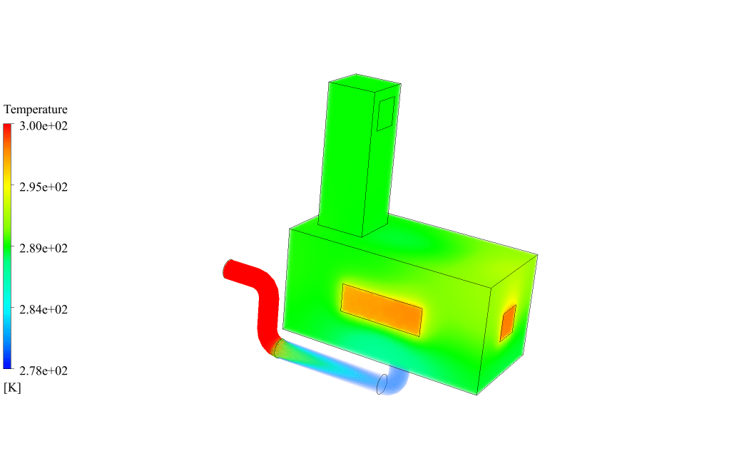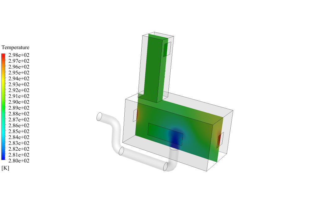 We have also modeled some windows on the walls of the room. These windows are exposed to sunlight and in contact with the hot air of the outside environment. So we have assumed that the glass windows have a constant temperature of 298K.