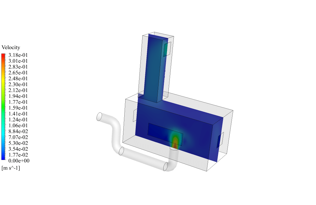 After the simulation, we obtained 2D and 3D temperature, pressure and velocity contours. We also obtained 2D and 3D velocity vectors.