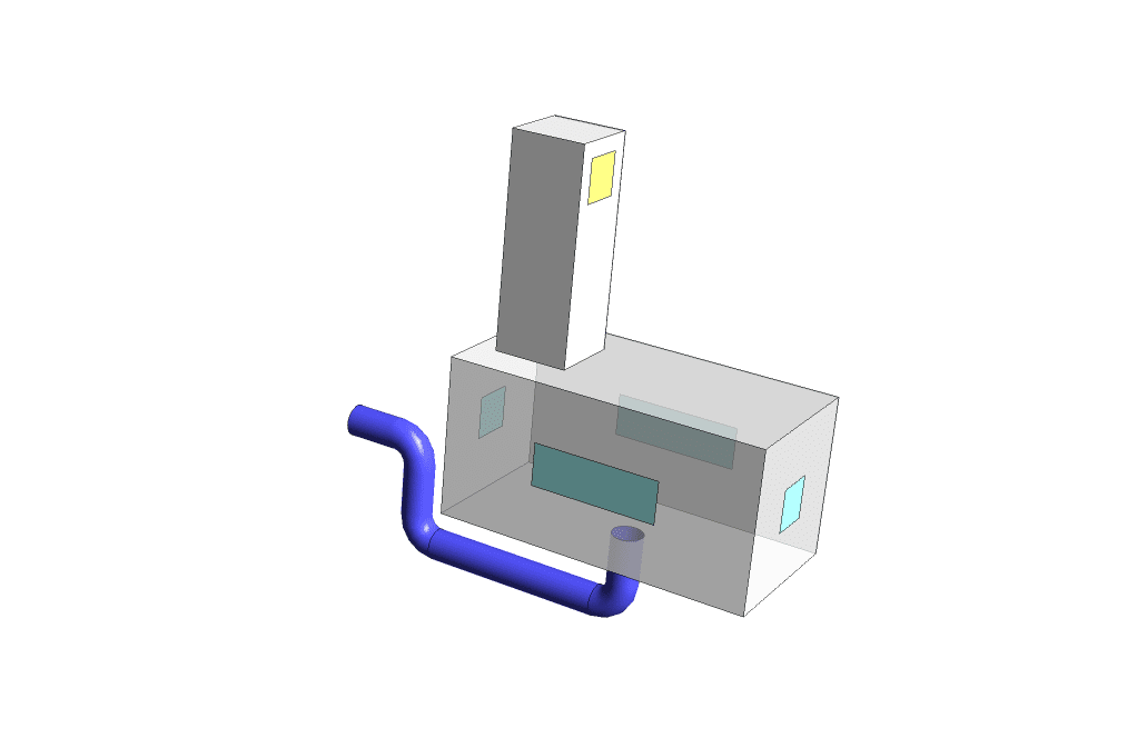 We designed the geometry of the model using Design Modeler software. The current model includes three parts: room, tower and underground channel.
